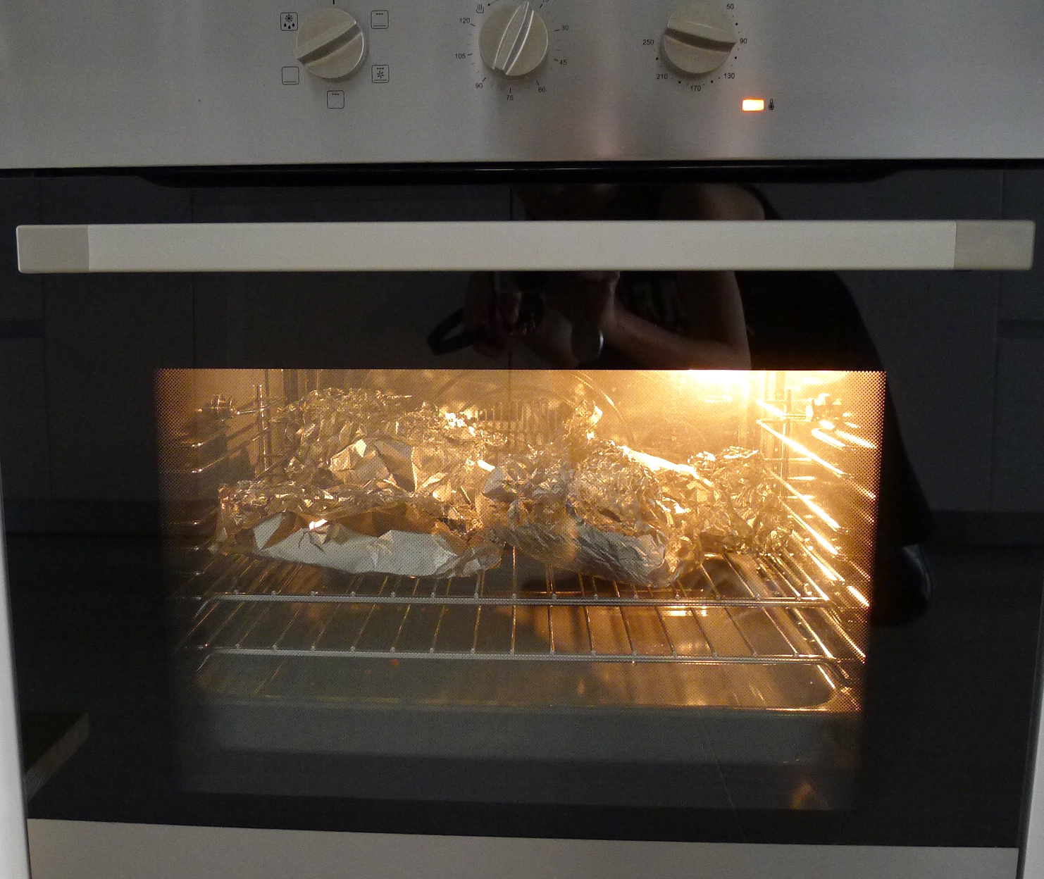 事不宜遲, 從容優雅地把三位 seafood送進烤箱.