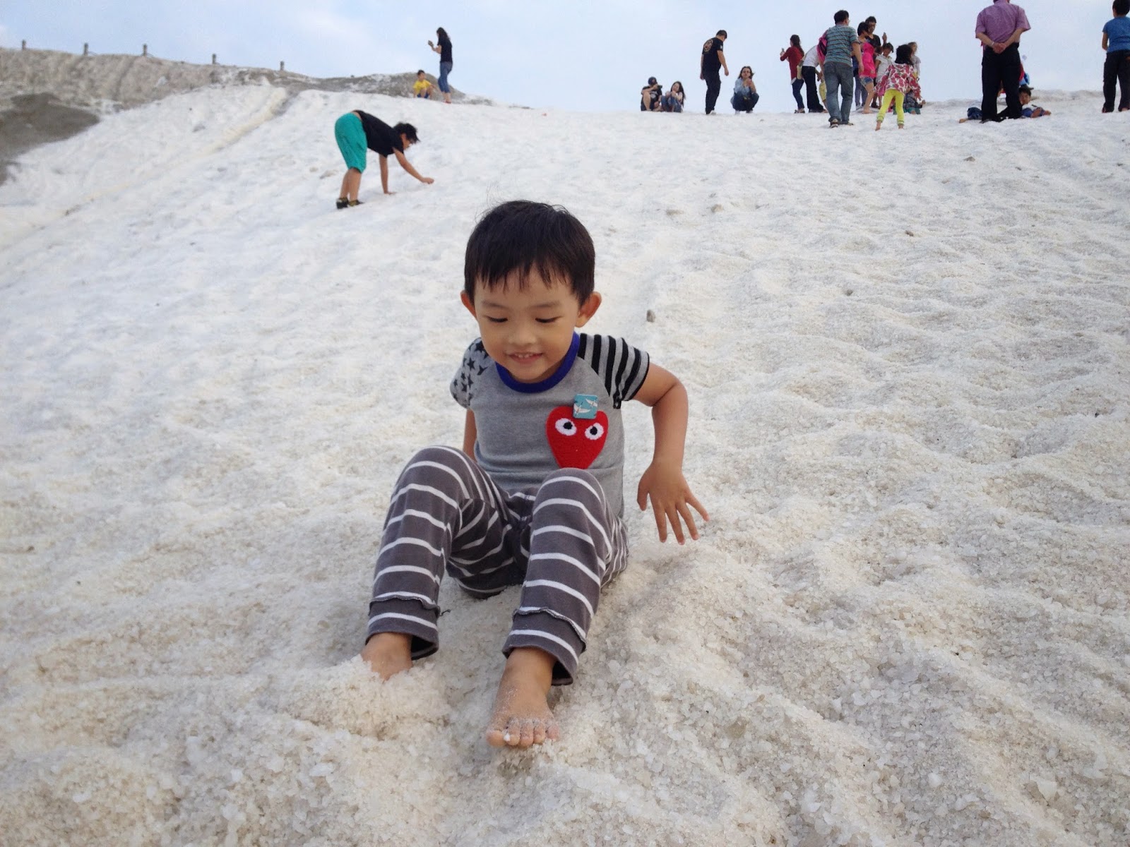 爬上鹽山遠眺四處的風景, 朋友說鹽山已經不產鹽了, 成本比國外進口的還高, 所以這裡變成觀光景點, 也是小朋友課外很好的教學景點.