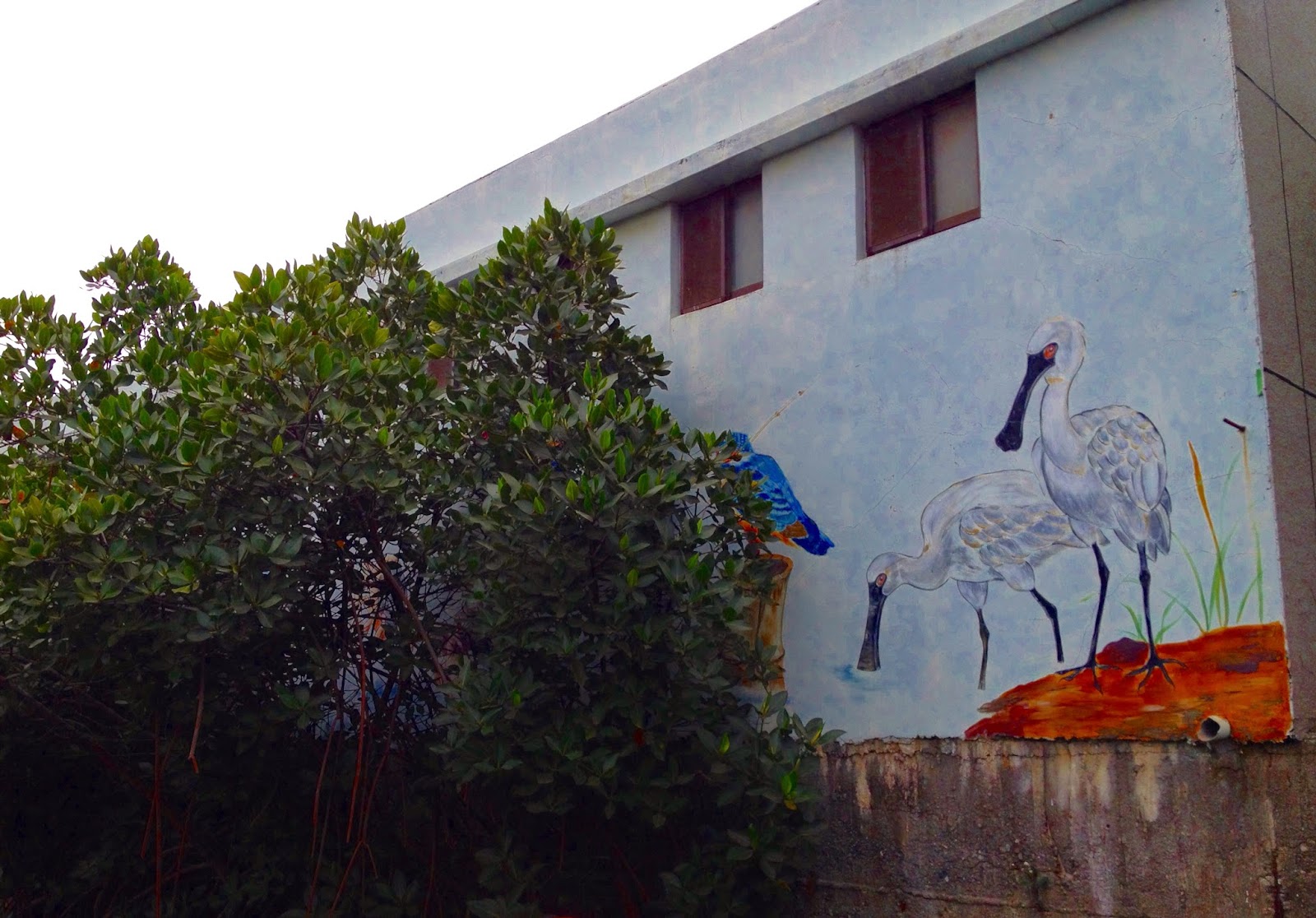 回程的右手邊有一個抹香鯨陳列館, 外牆是黑面琵鷺的畫像