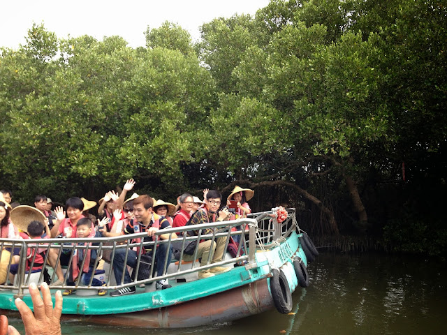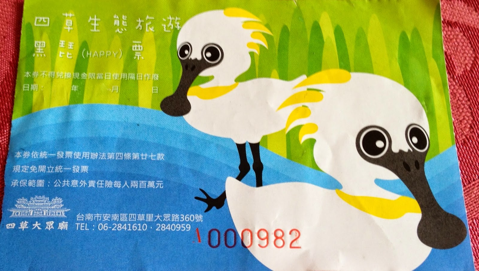 第一站我們來到了四草綠色隧道,朋友說她經常來四草因為只要有朋友來都會來搭船,今年已經來第三次了 路線有兩種因為今天時間有限 就搭紅樹林隧道線 丹尼三歲只要買黑皮happy票30元即可,黑皮票有兩隻黑面琵鷺可超可愛的吧!