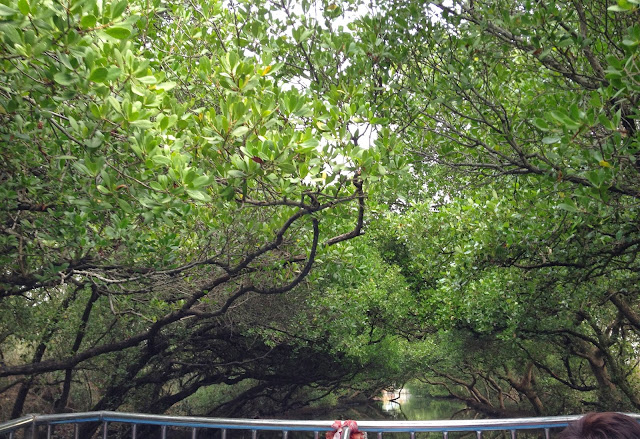 這幾年來四草綠色隧道成了很熱門的觀光景點,大眾廟後方排水道的紅樹林保護區在不到200公尺的水道旁分佈著三種紅樹林植物有水筆仔及招潮蟹甚至還可以看到彈塗魚在這裡有不同的大自然生態感受,因此袖珍版亞馬遜河的美稱